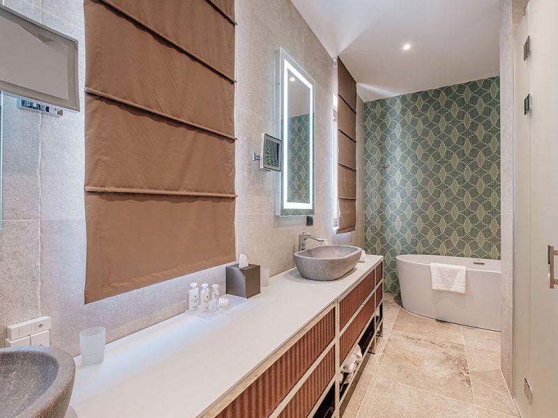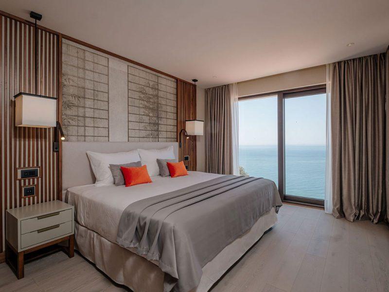 • Suite (52-75 m²) – prostrani apartman s jednom spavaćom sobom, modernim kuhinjskim kutkom i balkonom/terasom s pogledom na more; klimatiziran, kupaonica s kadom ili walk-in tušem, Wi-Fi, TV, sef i mini bar.