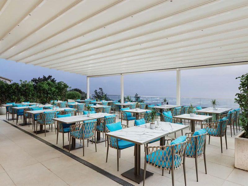 Hotelska ponuda: luksuzna recepcija i concierge usluga, TerraMar Restaurant – vrhunski restoran s panoramskim pogledom, Panorama Lounge Restaurant & Bar, Sunset Beach Club – plažni bar i grill, Wellness & Spa Club (spa tretmani, sauna, jacuzzi, fitness), privatna plaža s ležaljkama, suncobranima i ručnicima (uključeno za goste), outdoor Infinity bazen s pogledom na more; Kids Club i sadržaji za obitelj, besplatan Wi-Fi i parking, concierge usluge i organizacija izleta;
