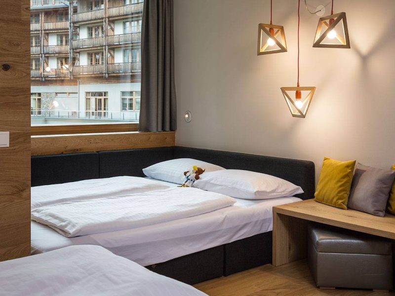 Obiteljski apartman Superior: cca. 40 m², za 2 odrasle osobe + 2-3 djece, 3-sobni apartman, prostrana soba s dnevnim boravkom s kaučem na razvlačenje, prostorom za spavanje roditelja i odvojenim ležajem za djecu s krevetom na kat, kadom i tušem / WC-om, balkonom, satelitskom TV (TV u rotirajućoj stijeni), telefon, sef