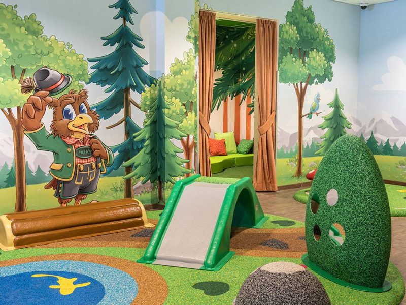 Hotelska ponuda: posljednja obnova 2021. godine (fasada, novi 100 m² Falky land (dječje područje), većina soba, novi prošireni restoran s dodatnih 100 mjesta, renovirano skijaško spremište s individualnim skijaškim ormarićima u svim sobama; 123 sobe i 6 apartmana, parking ovisno o dostupnosti – besplatno, podzemna garaža (uz nadoplatu ako je dostupna); Bazeni, Wellness, Beauty i Fitness područje: Oko 1.700 m² Acquapura SPA uključujući sobe za masaže i tretmane (uz doplatu), unutarnji i vanjski bazen, 2 saune, 1 parna kupelj, sobe za opuštanje, vanjsko sunčalište; Dječje područje – Obitelj & Djeca: 400 m² unutarnji Falky Land s čuvanjem djece od 3 do 12 godina, 7 dana u tjednu od 10:00 do 20:00; dječji tobogan, dječji bazen; psi dopušteni (ne u SPA i restoranu): 25 € po danu (bez hrane) – plaćanje na recepciji;