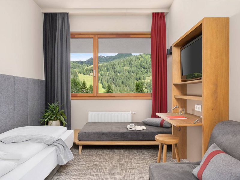 Obiteljska soba Comfort, 40 m²: obiteljska soba za 2 odrasle osobe i 1–3 djece, odvojeni dnevni boravak i spavaća soba, odvojena soba za djecu s krevetom na kat (duljina dječjeg kreveta: 190 cm), ormar, balkon ili lođa, kada ili tuš/WC, telefon, televizija, sef, hladnjak, sušilo za kosu