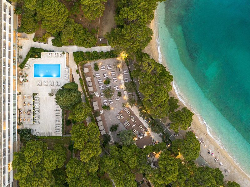 Bluesun Hotel Maestral je arhitektonsko i dizajnersko remek-djelo. Potpuno renoviran 2022. – obnovljene sve sobe, interijeri i bazen, uz zadržavanje prepoznatljivog stila „starog Maestrala“. Hotel je smješten u borovoj šumi, odmah uz šljunčanu plažu, 3–5 min hoda od poznate plaže Punta rata.