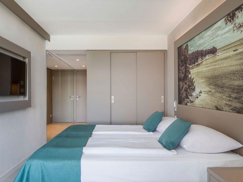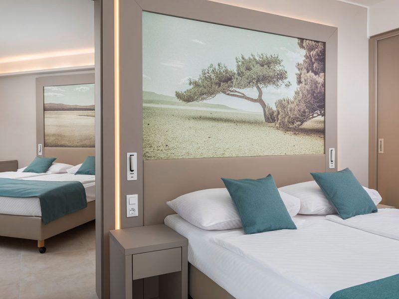 • Senior suite (cca 60 m²): odvojena spavaća soba i dnevni boravak, veća razina privatnosti i komfora