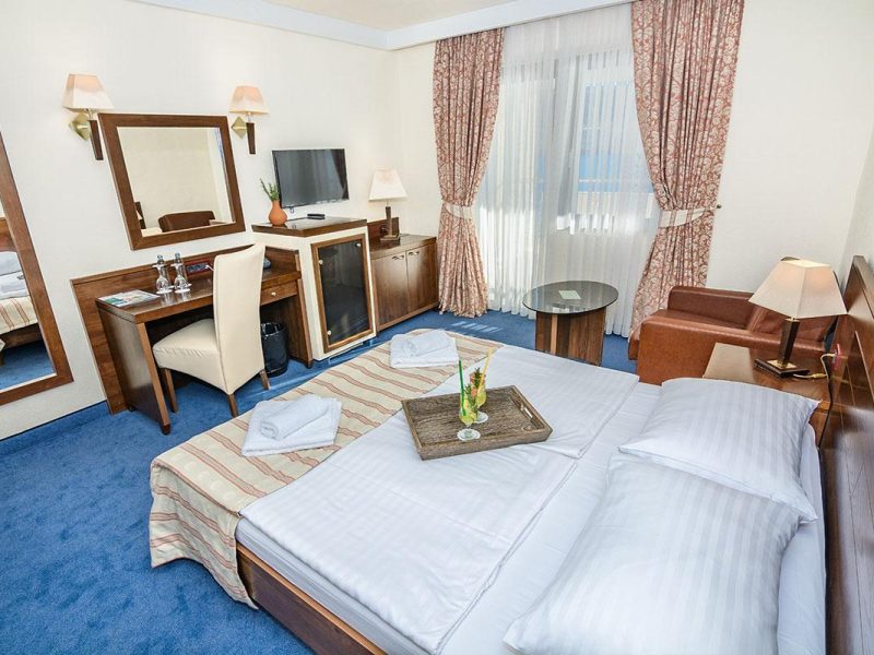 Hotelska ponuda: restoran, aperitiv i coctail bar, besplatan wi-fi u cijelom hotelu (osim u wellness i spa centru), djeca mogu uživati u igraonicama i gaming room-u (PlayStation 5). wellness i spa centar, unutarnji i vanjski bazen, hotelsko parkiralište uz doplatu 10 € dnevno na recepciji – bez mogućnosti rezervacije (mali broj parkirnih mjesta), gradsko parkiralište pored hotela cca 10 € dnevno, kućni ljubimci nisu dopušteni