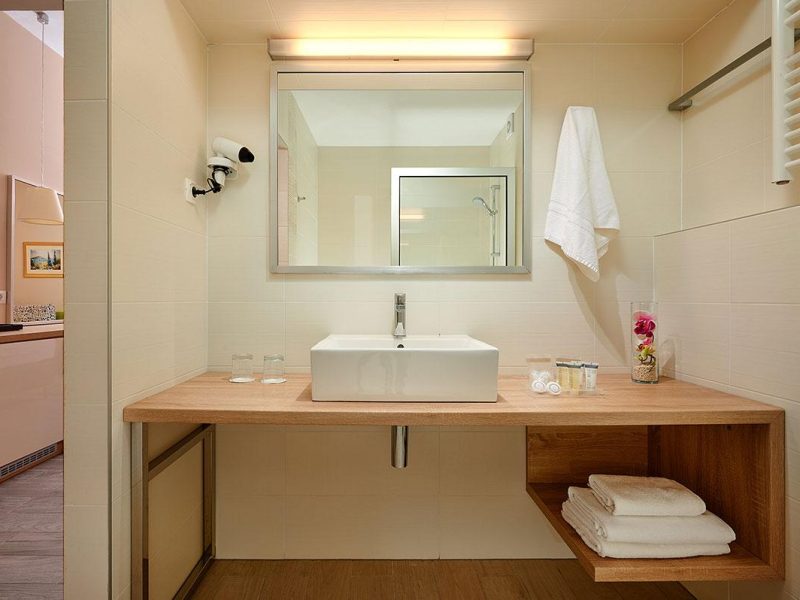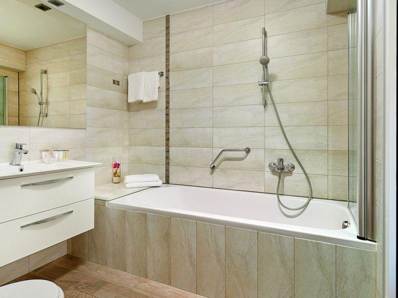 Premium dvokrevetna soba balkon (22 m²) – pomoćni ležaj fotelja (90 x190), tuš/WC, sušilo za kosu, telefon, sef, LCD SAT TV, klima uređaj, hladnjak / mini bar (na upit uz doplatu), balkon.