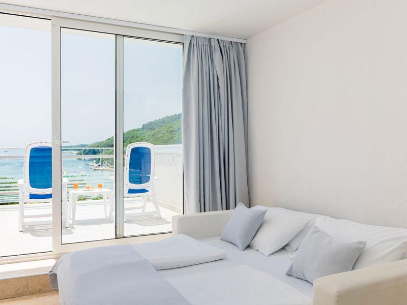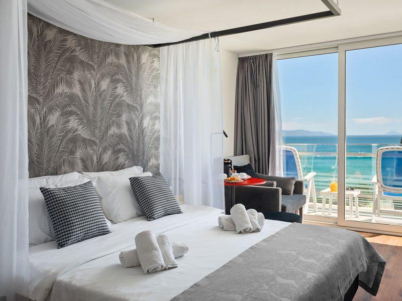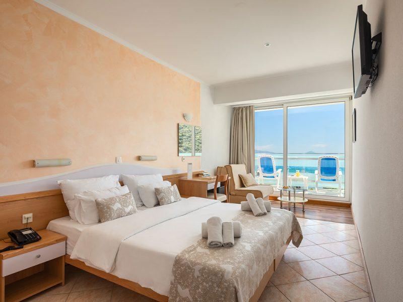 Sobe: klimatizirane, sat TV, sef, sušilo za kosu, hladnjak, telefon; S2MB, S3MB & S4MB– 25m2, balkon, morska strana, moguće je rezervirati za najviše 4 osobe; 3. osoba do najviše 18 god., 4. osoba u sobi može biti isključivo osoba do 18 god.; neke sobe sa kaučem na razvlačenje (140×190 cm), neke sa mogućnošću 2 pomoćna ležaja različitih dimenzija (prihvaćanjem ove ponude smatra se da je stranka pristala na uvjete smanjenog komfora), dječji krevetić moguć u standard sobama (S2MB, S3MB, S4MB) (uz doplatu cca 5 € dnevno); economy– 16m2, ulična strana, nema mogućnost pom. ležaja; deluxe soba za 1 (LUX1) – pogled na more, deluxe soba za 2 (francuski krevet 140-160 cm) (LUX2) – pogled na more