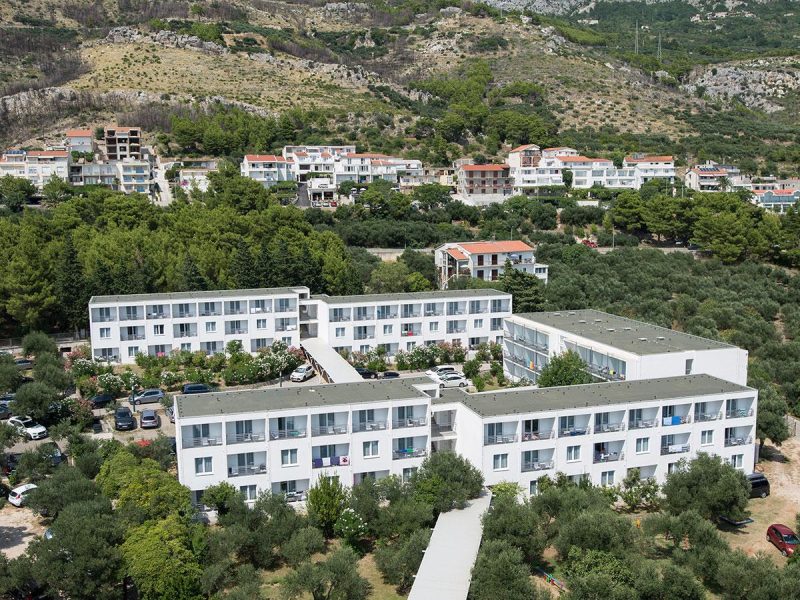 Hotelska ponuda: hotel i 5 depandansi Maslinik, restoran u hotelu, aperitiv bar, Pool Bar, Kaštelet Restaurant & Bar, otvoreni bazen s dječjim bazenom, vanjski bazen (508 m2), dječje igralište i klub; gosti smješteni u depandansama koriste sve sadržaje u hotelu, fitness, wi-fi besplatan, parkiralište (uz doplatu 10 € – plaćanje na recepciji); sadržaji i aktivnosti: 6x tjedno dnevni i večernji zabavni program, 3x tjedno glazba uživo, ležaljke i suncobrani na bazenu, fitness, aerobik, aqua gym, tenis (uz rezervaciju) 1 sat po sobi tokom boravka besplatno, ostalo se plaća, boćanje, stolni tenis, društvene igre, najam bicikla (uz rezervaciju) 1 sat po sobi tokom boravka, ostalo se plaća, Mini klub za djecu od 4-12 god; kućni ljubimci – dozvoljeni psi do 15 kg (uz doplatu na recepciji 25 € dnevno)