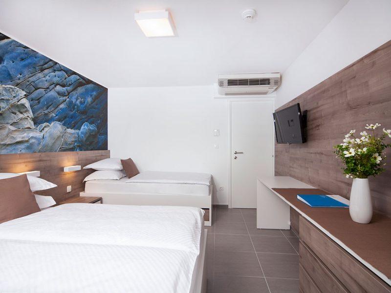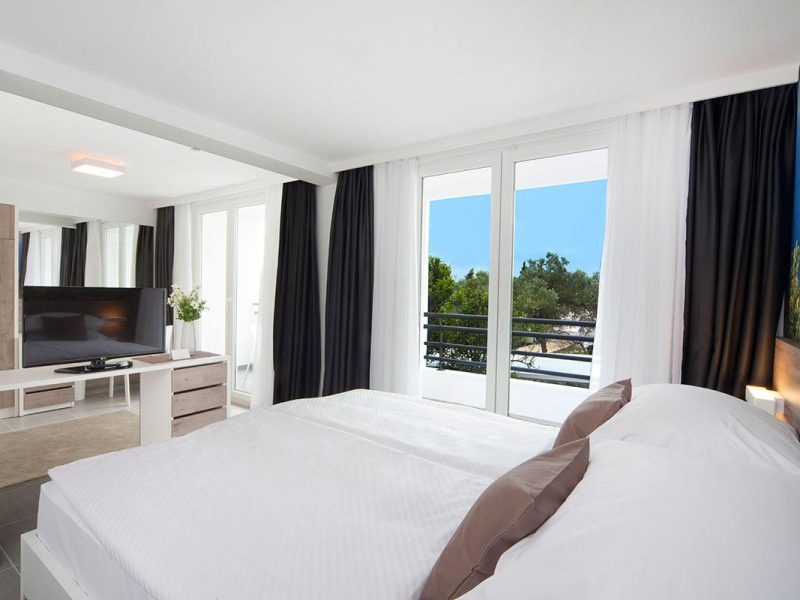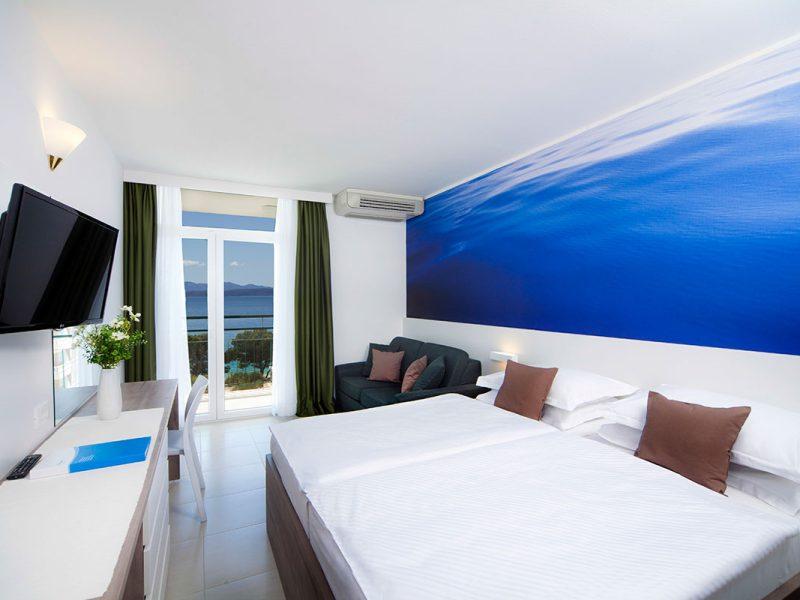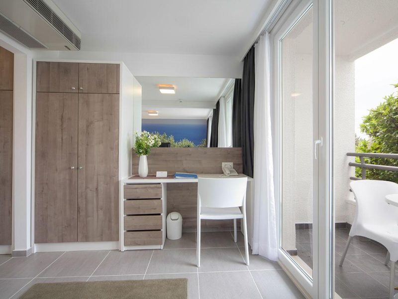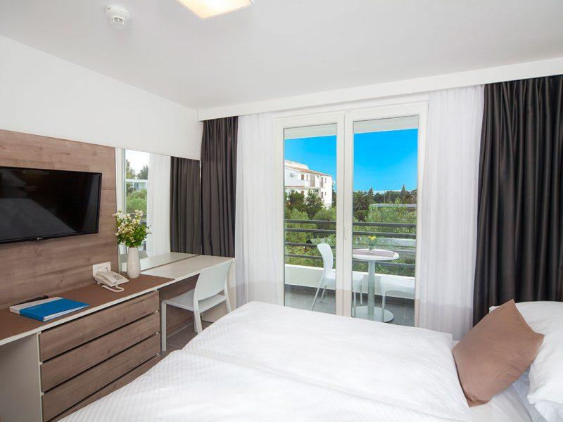 Sobe: klima, balkon, LCD TV sa satelitskom televizijom i međunarodnim kanalima, besplatan Wi-Fi, sef, telefon, dio kupaonica renoviran za sezonu 2023. (glavna zgrada i dio kupaonica u depandansama), tuš ili kada (većina soba ima kupaonice s tušem, family sobe imaju kadu )sušilo za kosu