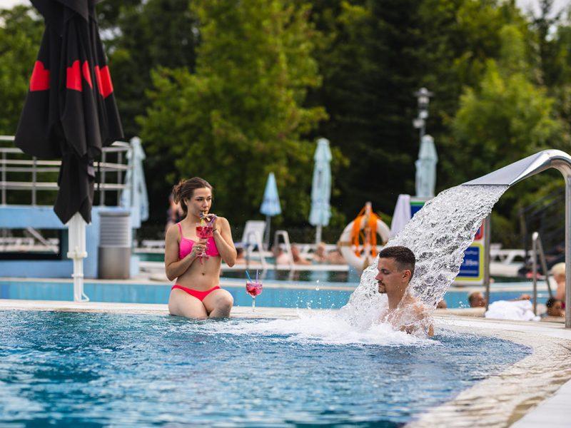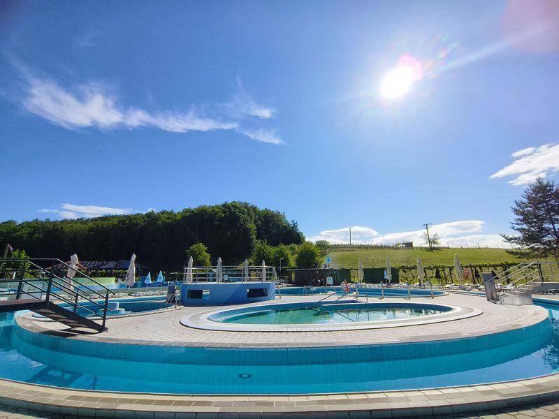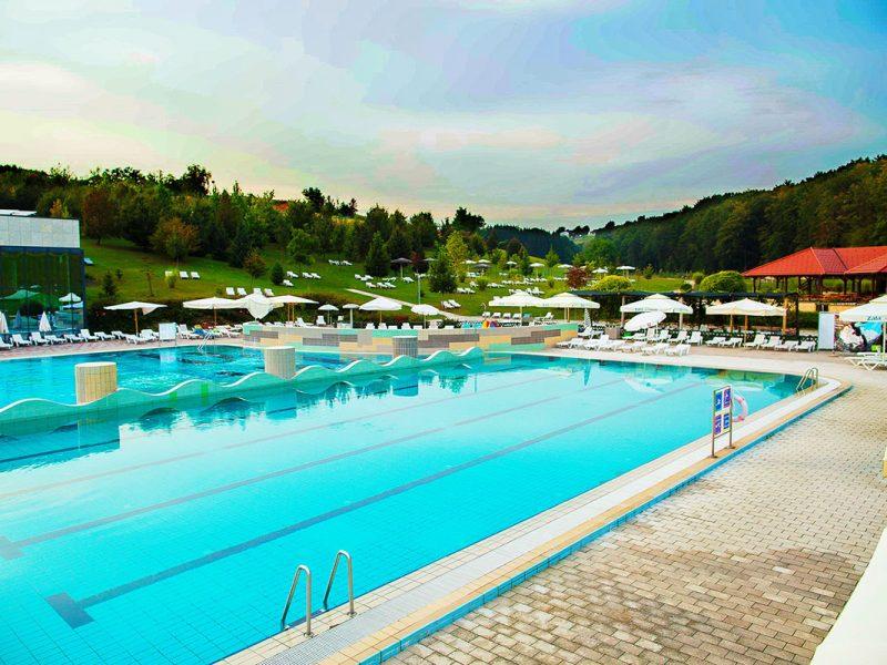 Termalni park Bioterme prostire se na više od 2000 m² vodenih površina : unutarnji dio (600 m²) s 5 bazena otvoren je tijekom cijele godine., vanjski dio (1400 m²) obuhvaća 7 bazena, među kojima su 3 whirlpoola otvorena cijele godine te bazeni s brzim tokom, plivački i višenamjenski bazeni, bazen za masažu, bazen za opuštanje i dječji bazen. Iznad bazena nalazi se svijet sauna – finska, turska, biljna i infracrvena sauna – za potpuno opuštanje i detoksikaciju tijela.