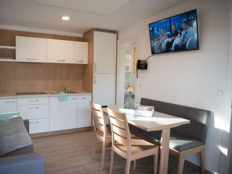 JSU 2-4 B junior suit sa whirpoolom na terasi 47 m²; spavaća soba i dnevni boravak, bračni ležaj i kauč na razvlačenje za dvije osobe, kupaonica sa tušem ili kadom, sušilo za kosu, LCD TV, besplatan WiFi, klima uređaj, minibar, sef, telefon, pogled na ljetno kupalište.