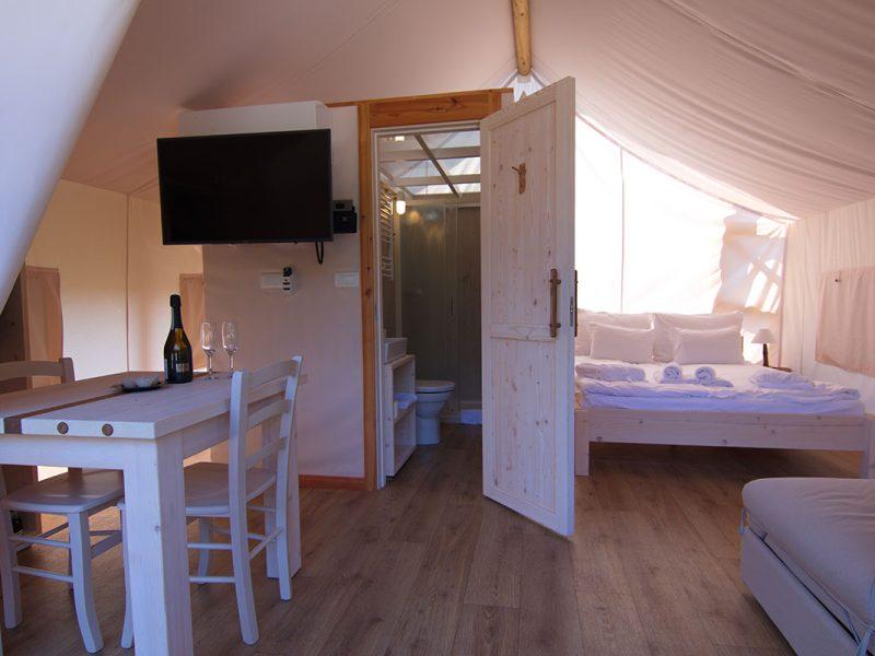 Wellness centar Bioterme nudi klasične i ajurvedske masaže, kozmetičke tretmane, romantične kupke za dvoje te privatnu saunu u glamping resortu Sunčna dolina. Korištenje wellness centra uz nadoplatu na licu mjesta.